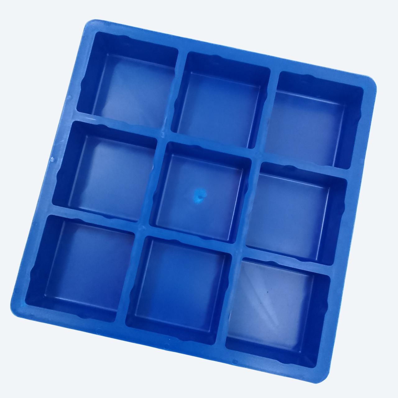 This plastic 100x100x50mm cobble paver mould has 9 cavities for producing smooth-, slate- or rock-finished driveway cobble pavers.