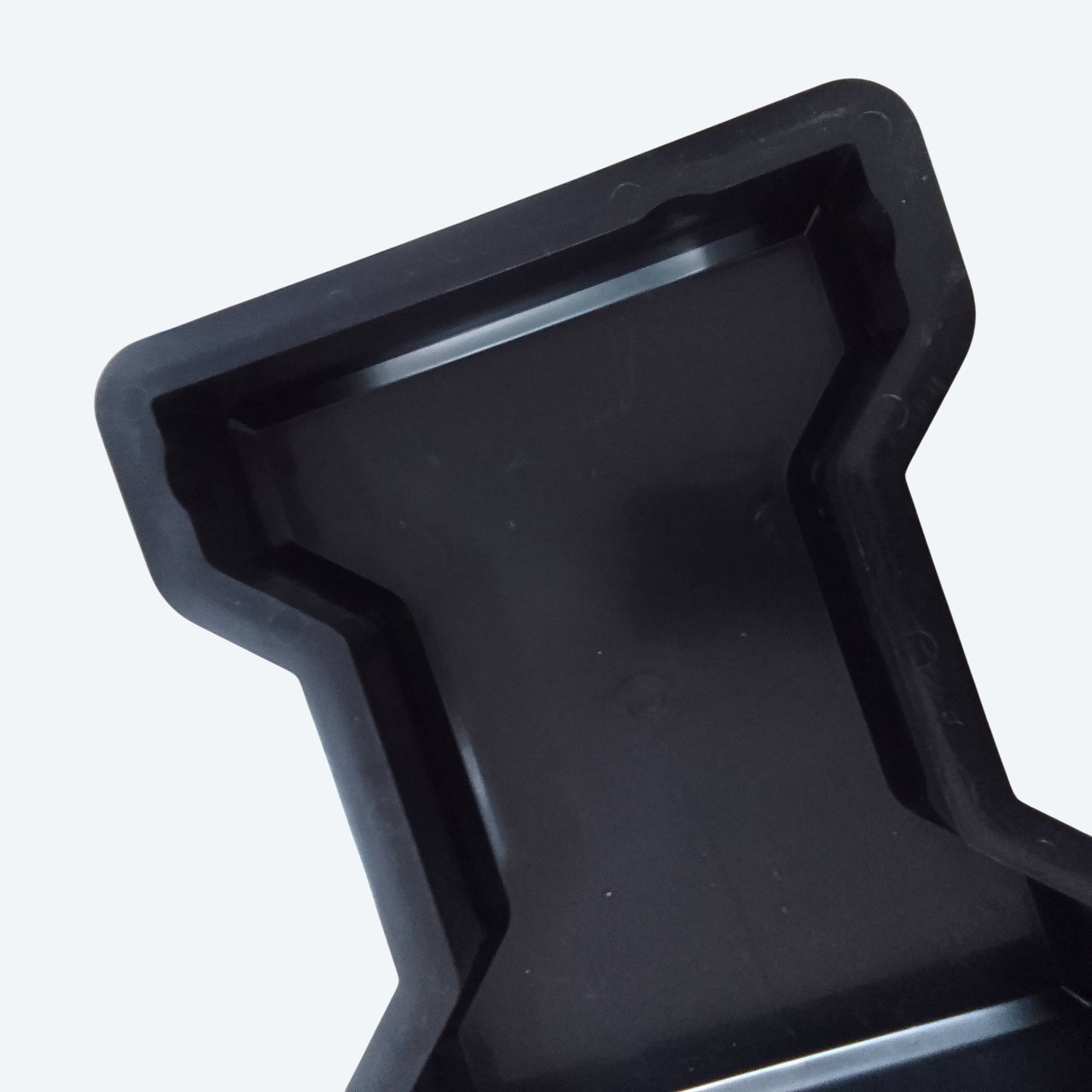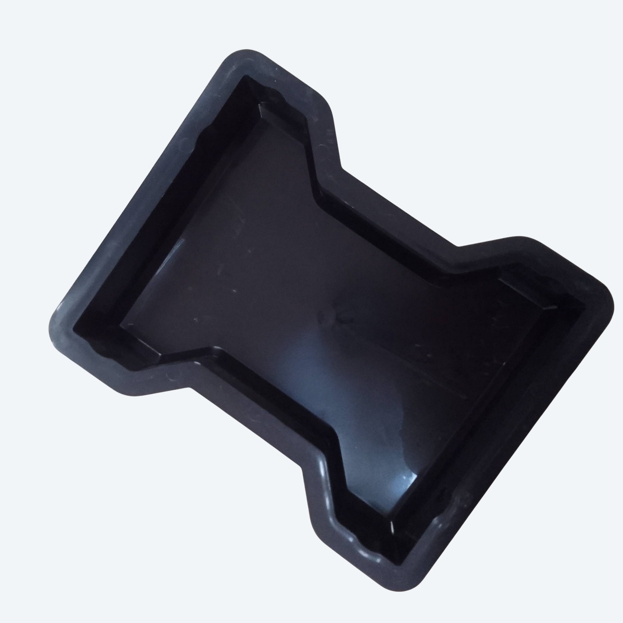 A plastic bowtie paver mould for producing interlocking pavers that are 50mm thick.