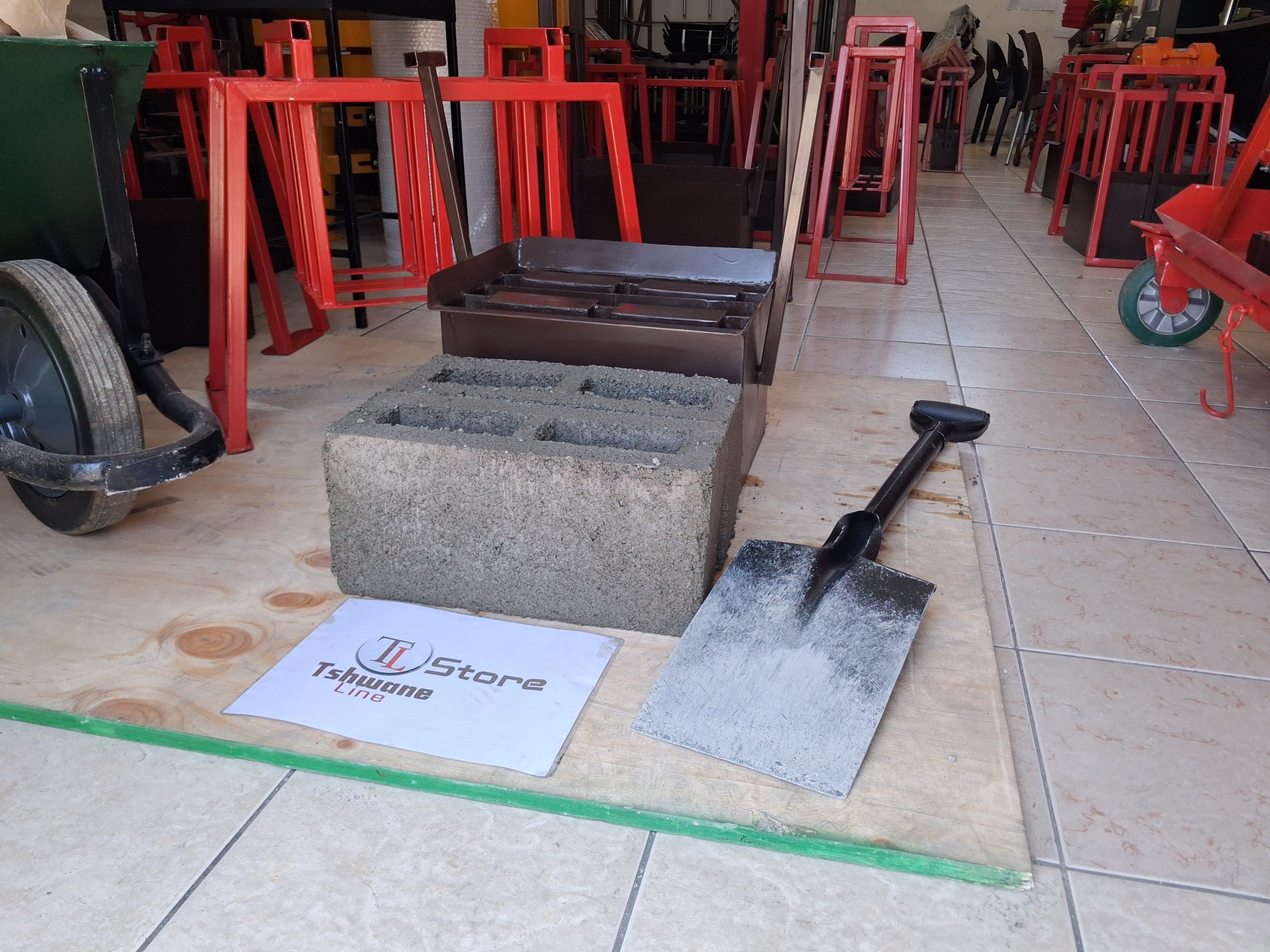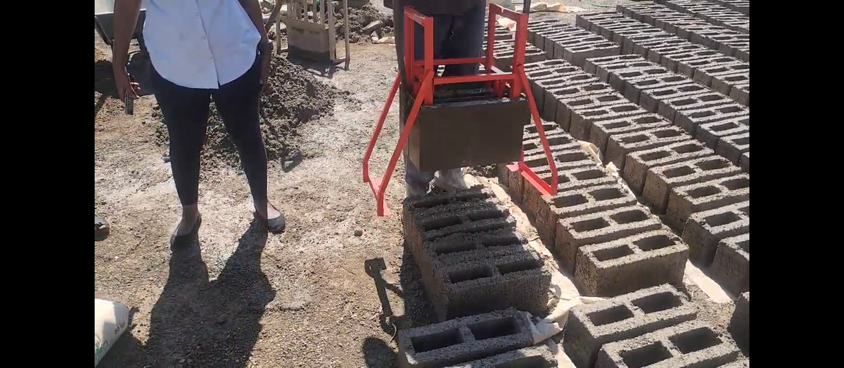 Recommended ( Balanced setup ) : 3 people: 1 person mixing , 1person handling the wheelbarrow , 1 person oporating the mould.
